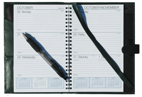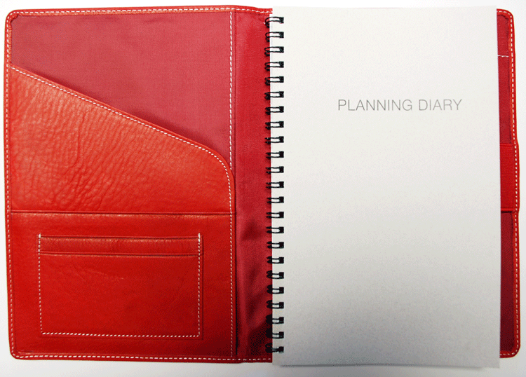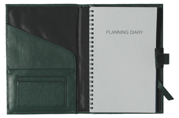 Weekly planner covers, monthly planners, day planners, weekly planner calendar, leather planners are great for scheduling your appointments, to do lists and weekly activities. Have one of our 3x5, 5x8, 8x11 weekly and monthly planner covers customized with your name or company's logo. We have weekly, monthly and daily and bi-weekly planners in ruled and blank formats. We manufacture many dated products (diaries, planners, calendars, leather journals and more) that can be personalized from the outside cover to the inside pages. Our daily, weekly and monthly planners are a great way to advertise your company in your office meetings, for giveaways, as corporate gifts, at trade shows or to leave in your front office for current and potential customers. Call us for corporate and wholesale pricing at (800) 310-2723.