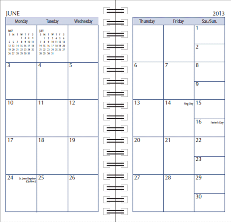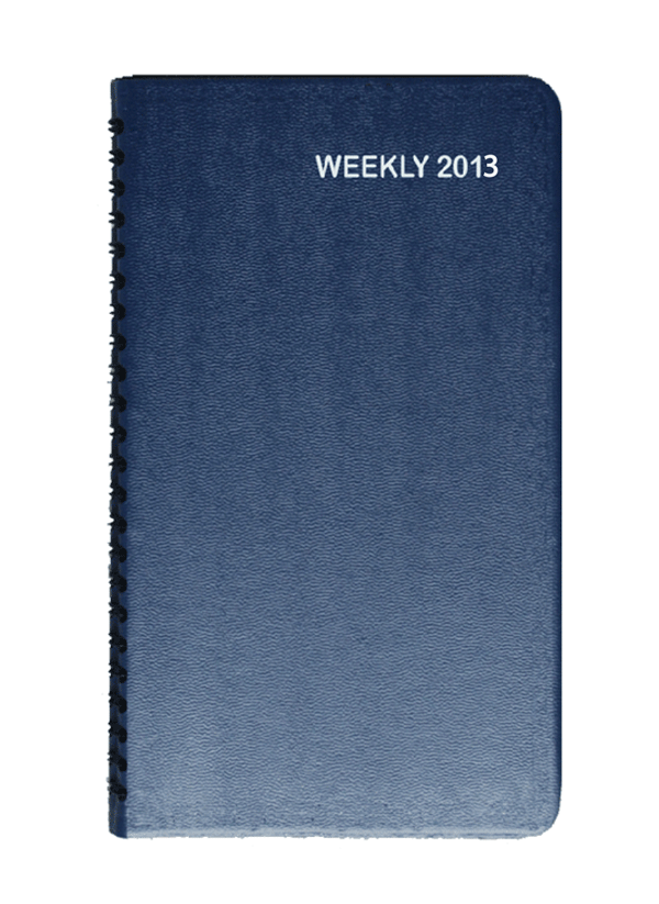 Weekly/monthly format, with reference information and spaces for phone numbers and birthdays/anniversaries. Sturdy wrapped leatherette cover. Available in Green, Red, Burgundy, Blue and Black.